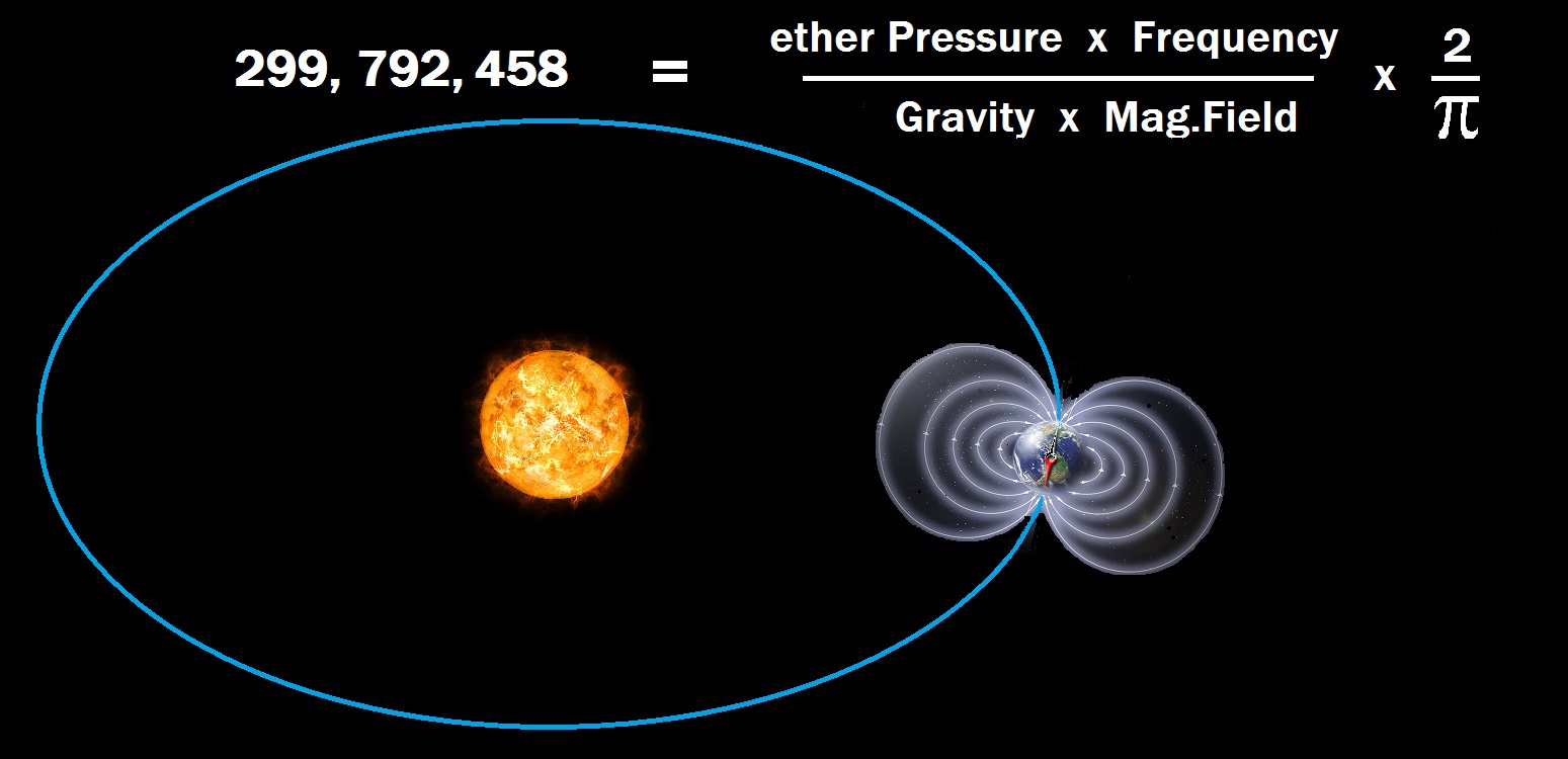 28) | Speed of Light | = | ether Pressure x Frequency x 2 / Gravity x Mag.Field x Pi |